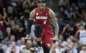 CLEVELAND, OH – MARCH 20: LeBron James #6 of the Miami Heat celebrates after scoring the game tying basket during the second half against the Cleveland Cavaliers at Quicken Loans Arena on March 20, 2013 in Cleveland, Ohio. The Heat defeated the Cavaliers 98-95. NOTE TO USER: User expressly acknowledges and agrees that, by downloading and or using this photograph, User is consenting to the terms and conditions of the Getty Images License Agreement. (Photo by Jason Miller/Getty Images)