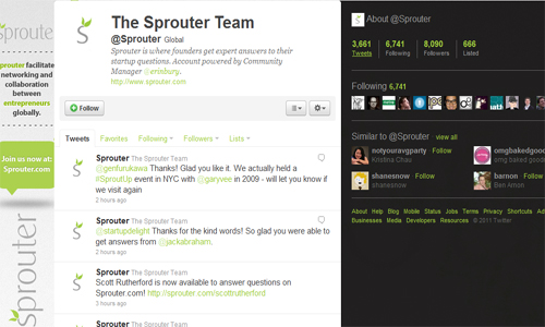 The startup resource offers entrepreneurs expert advice on a range of topics. It starts by compiling answers to one’s most pressing business questions and then dispersing that information by tweeting at inquisitive startup founders, sharing the links to Sprouter.com and other relevant sites, as well as Sprouter Weekly, for the latest startup news. The team even tweets when their clan of experts is available to chat.