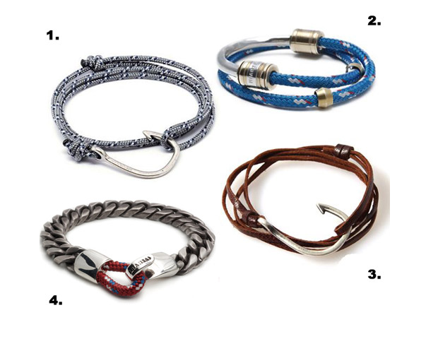 • Clockwise, from top left: Armory Dome Ring ($550); Curb Chain Ring, wide ($400); Maritime Band Ring, 10mm ($850); Naturals Sea Urchin band ring ($575).