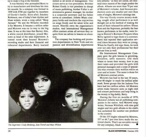 In 1973, BLACK ENTERPRISE started its annual ranking of the nation’s largest black-owned businesses, and Motown debuted at the No. 1 spot, grossing $40 million in revenues and holding that position on every list until 1983 when the company grossed $91.7 million in revenues. Motown lost the title of list leader in 1984 when Johnson Publishing Co., publisher of Ebony and Jet magazines and producer of Fashion Fair Cosmetics, took the top spot. Motown would make its last appearance on the 1988 list.
