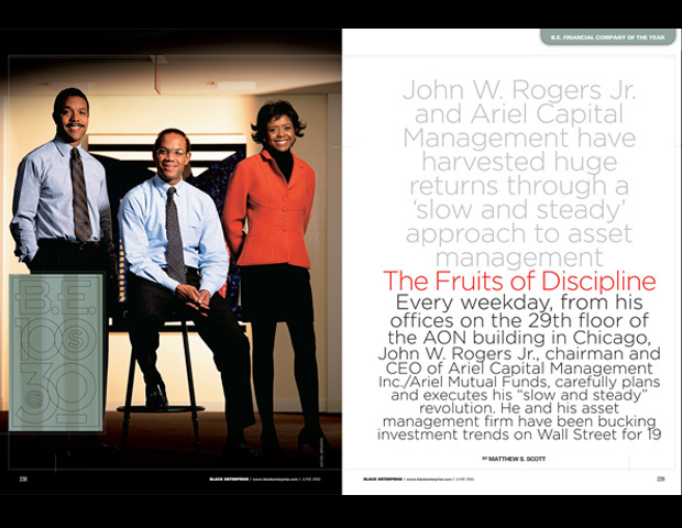 As Rogers built his mutual fund family—the first was Ariel Fund—he brought on Calvert Group Inc., a financial services company, in 1986 to serve as the distributor and transfer agent. Yet eight years later, in a bold move to gain independence, he paid $4 million to separate from Calvert and assumed responsibility for all operations. “We went from managing $2.3 billion to $1.1 billion over a short period of time, and it was extraordinarily uncomfortable and frightening,” Rogers told BE at the time.