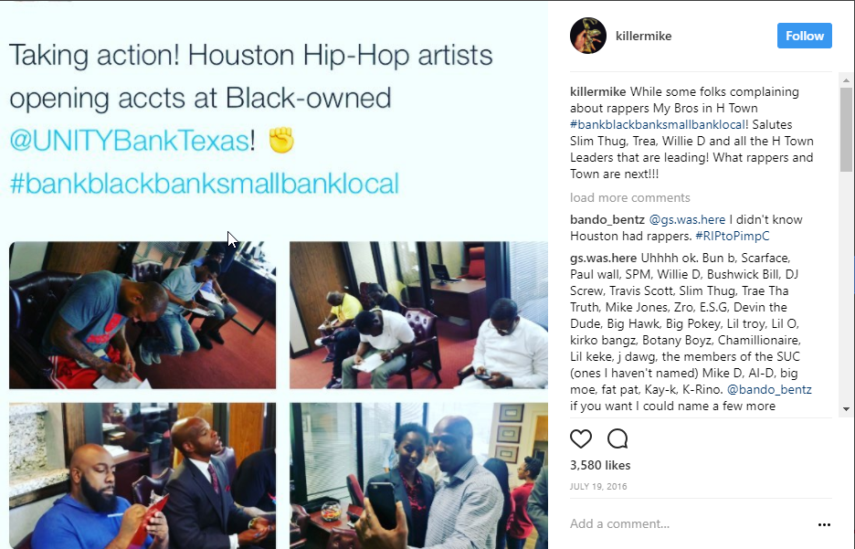 Shortly after that broadcast, Killer Mike tweeted that Atlanta’s largest black bank Citizens Trust (No. 5 on the BE BANKS list with $396 million in assets) gained an additional 8,000 depositors within five days. That call to action had been echoed by singers Usher and Solange Knowles, among other celebrities, as well as countless African American grassroots activists, community leaders, entrepreneurs, professionals and others who have driven the burgeoning #BankBlack movement.