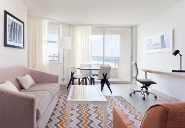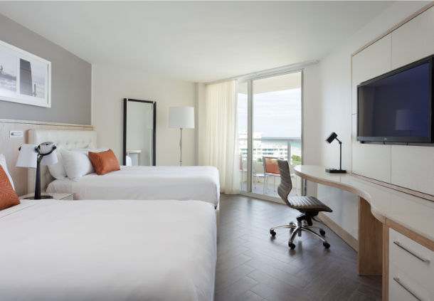 This historic Marriott hotel has long welcomed guests seeking sunshine, shopping, and the seashore. Today’s visitors enjoy those same pleasures but in modernized guest rooms with upscale amenities and balconies with skyline or ocean views. The Marriott Stanton South Beach has more than 200 rooms available, including more than half a dozen suites. The clean lines and art deco styling are a nod to the hotel’s past while wall-mounted flat screen televisions, open floor plans, and luxurious bathrooms with premium fixtures meet contemporary expectations.
