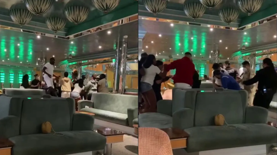 The Carnival Magic was just off New York harbor wrapping up an eight-day Caribbean cruise early Tuesday when melee ensued after two people started fighting on the dance floor. An eyewitness shared video of the brawl that she claims started over an alleged cheater who took part in a threesome with other passengers.