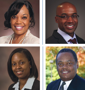From top, clockwise: Nicole Bremser, Assistant VP, Diversity Recruiting Strategy; John Brown, Investment Strategy Analyst; Camille Donald, Assistant VP & Counsel; Greg Deavens, SVP & Corp. Controller