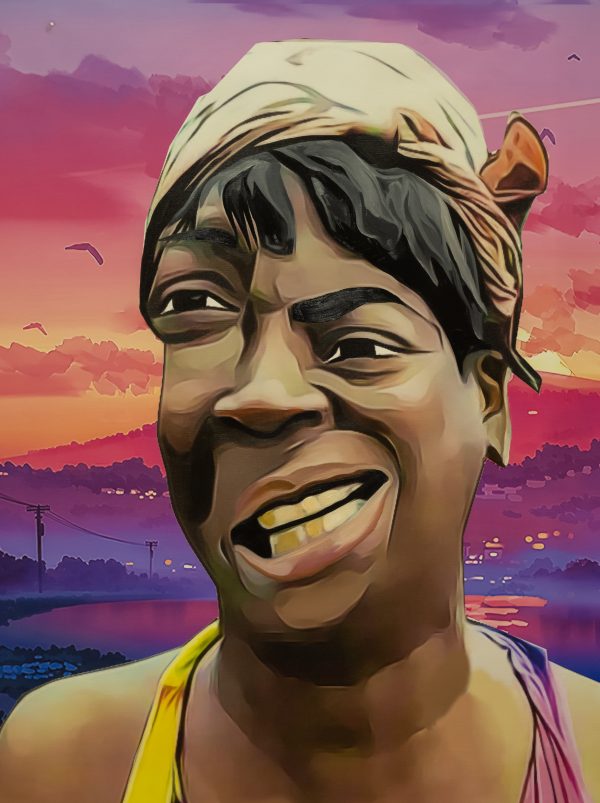 Smith’s artistic adaptions of Black internet memes are notable for utilizing a more striking technique of skewing the subject’s facial features, which allows for a unique interpretation of the subjects. This style remains realistic in recognizable aspects.