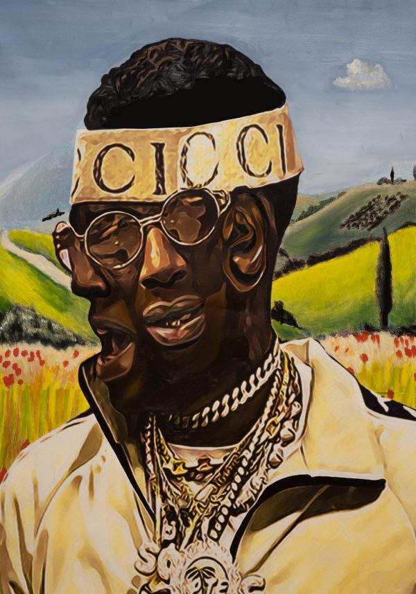It’s no secret that the evolution of Black memes, a culmination of reactions of Black people, has played a significant role in pop culture and on social media. Smith, an interdisciplinary painter, has achieved recent notoriety for his portrait paintings of Black subjects in popular internet memes. In his artistic element, Smith uses a surreal style of portraiture to explore Black identity, past, present, and future.