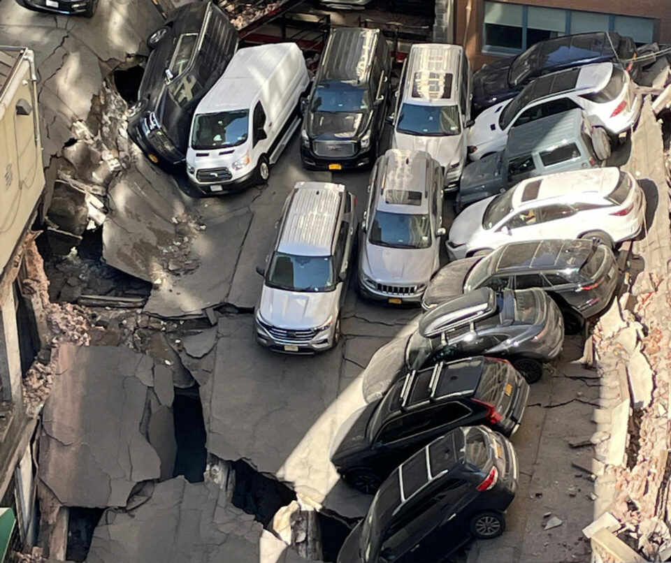 Reuters video footage from the scene, in Manhattan’s financial district blocks from the World Trade Center and New York Stock Exchange, showed a rescue operation getting underway and multiple cars stacked on top of one another amid crumpled slabs of concrete.