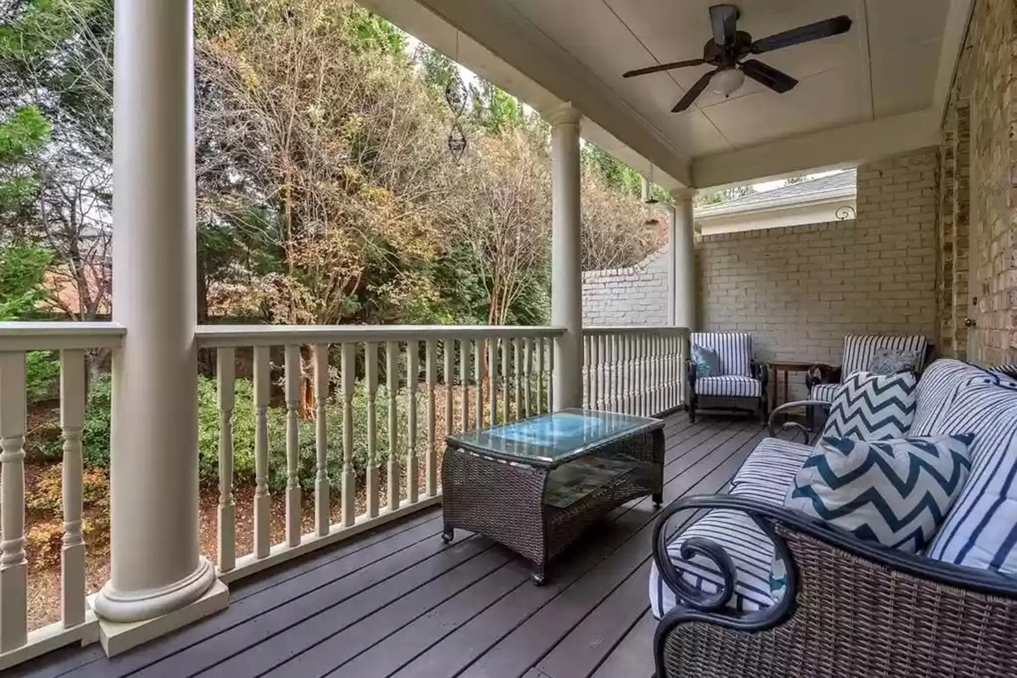 It’s located in a 24/7 gated community, encompassing about 2,600 square feet of living space, and features a gas fireplace in the master bedroom and two guest suites with private baths. Other amenities include an elevator, covered patio, kitchen, and a two-car garage. Residents have access to private basketball courts, a pool, walking trails, an exercise facility, and green space along the city’s Chattahoochee River.