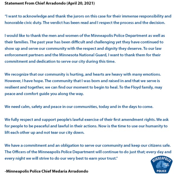 The president also spoke about fighting for the delivery of full justice and equality being delivered to all Americans, and what must be done in Floyd’s memory. He also mentioned that it is time for Americans to unite. In the process of responding to the Chauvin verdict, Biden mentioned the need to restore trust between law enforcement and the community, while reforming the criminal justice system, and fighting for the passage of the George Floyd Justice in Policing Act.