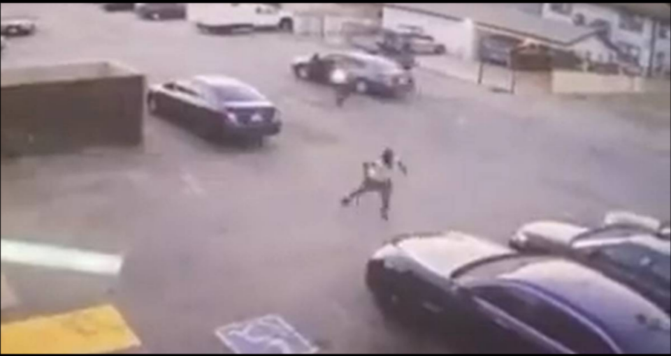 A video with no sound captures the incident which shows the victim getting shot and falling to the ground within seconds of the cops arriving at the scene.