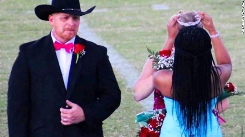 Walters was overcome with emotion as she stood next to her father, thinking about her mom, who was known as the “school mom.” She had no idea Covington would make such a nice gesture. But after asking the school for permission, she went over and crowned Walters.