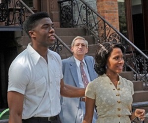 Warner Bros. and Legendary Pictures have brought the story of Jackie Robinson to the big screen, starring Chadwick Boseman as the legendary baseball player and Harrison Ford as Branch Rickey, the man responsible for signing him.