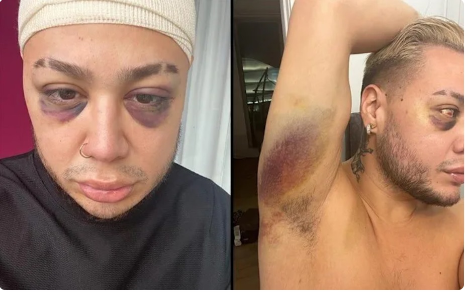 Photos show Gallardo badly injured as a result of the attack. He was left with two black eyes and bruises on his arms and upper torso.