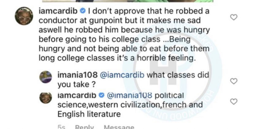 While not condoning the robbery, Cardi B took to Twitter to offer some sympathy to the suspect, saying: