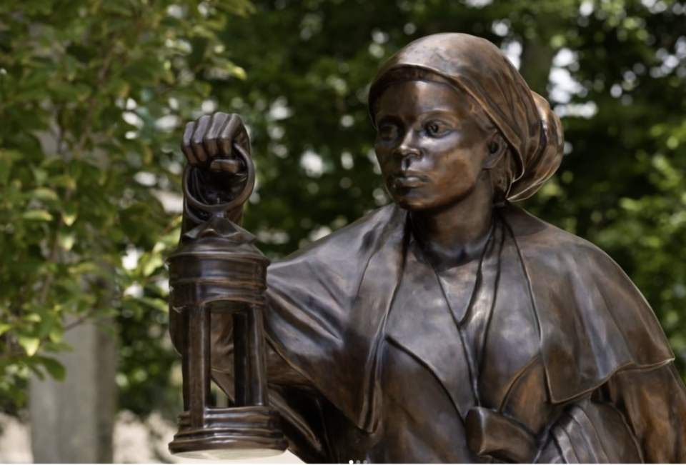 According to NBC News, the bronze statue shows Tubman holding a lantern and armed with a pistol in her belt. The three other sculptures on the property are white men.