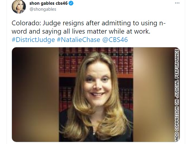 According to The Denver Post, a judge in Colorado’s largest judicial district will resign. It was reported that the Colorado Supreme Court on Friday censured 18th Judicial District Court Judge Natalie Chase for using a racial slur, employing derogatory language to speak about another judge, and espousing opinions about racial justice from the bench, and directing court employees to work on her personal business.