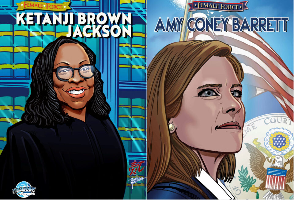 U.S. Supreme Court Justice Amy Coney Barrett is the latest to join the pantheon of TidalWave Comics‘ “Female Force” series, followed by the latest appointee to the bench, Ketanji Brown Jackson.