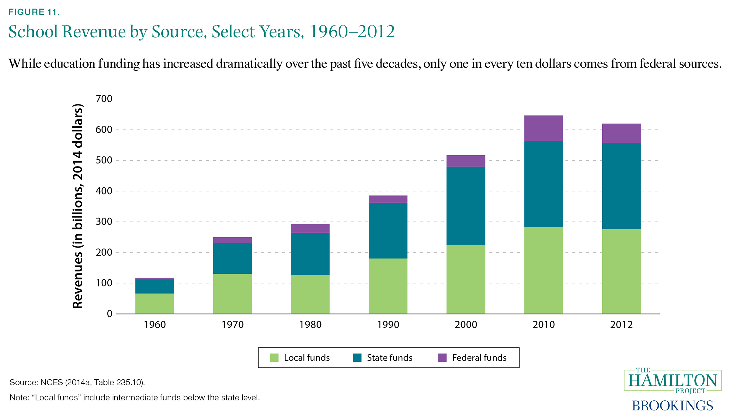 Fact 11. Most education spending comes from state and local revenues.