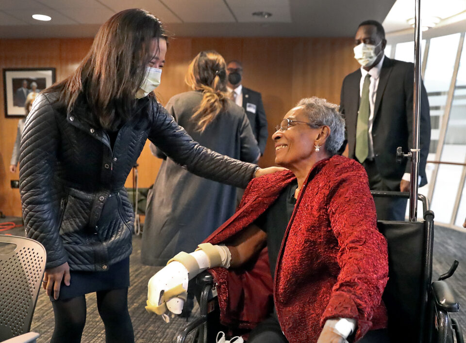 The 91-year-old civil rights activist who is recovering after being stabbed multiple times in a Boston park is thanking the “two kids” who helped save her life.