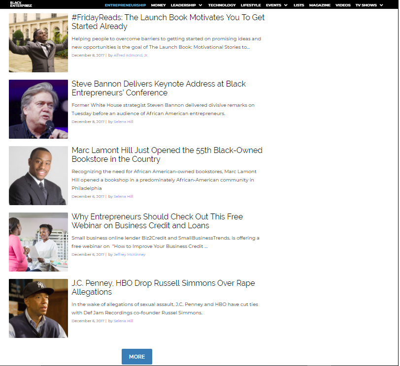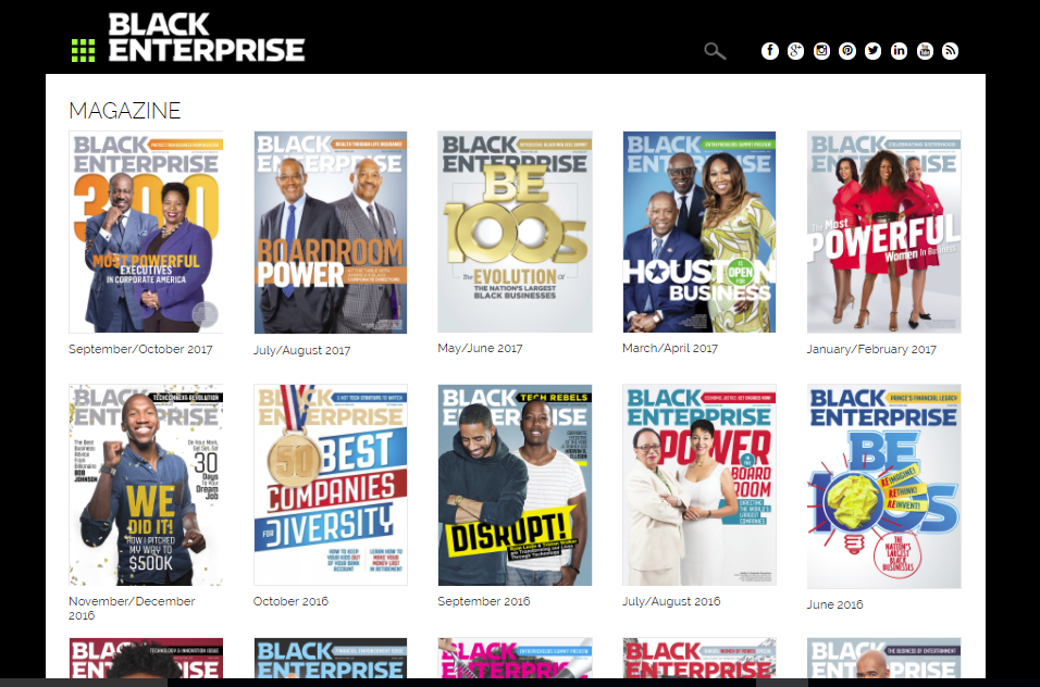 BlackEnterprise.com provides original, interactive content pertaining to small business, wealth building, and careers, and it includes expert contributors. The site’s new layout offers better usability, intuitive navigation, and enhanced search capabilities for all of BE’s signature lists, including a current and historical archive of the BE 100s, the top-grossing black-owned businesses in the nation, the Top 50 Best Companies for Diversity, The Most Powerful Women in Business, the 300 Most Most Powerful Executives in Corporate America, and more.