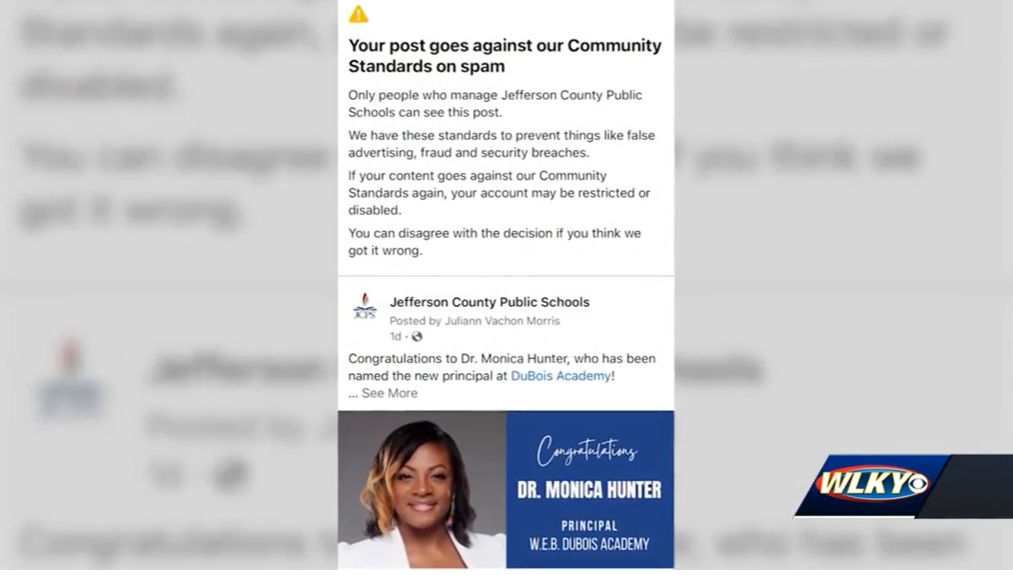 Since May, Jefferson County Public Schools published 11 Facebook posts to welcome new principals to the school district. Out of the 11 principals highlighted, six were white, five were Black, and all the posts with Black principles were cited for violating “Community Standards on spam” and taken down, according to the Courier-Journal.