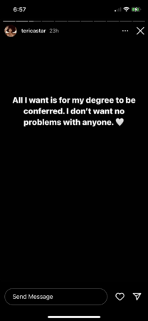 Williams hinted at the turmoil she is facing by posting another Instagram story saying she wants FAMU to award her degree and asks her followers for their prayers.