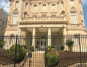 The elegant mansion, built in 1917, is adorned with stained glass windows, grand marble balconies, and more.