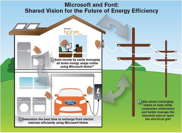 “Ford and Microsoft both share a strong commitment to contributing to a better world. Today, we begin the next major step in our working together and leading the way for energy efficiency and environmental sustainability,†said Alan Mulally, Ford Motor Co. president and CEO. “For Ford, this is a needed step in the development of the infrastructure that will make electric vehicles viable.â€