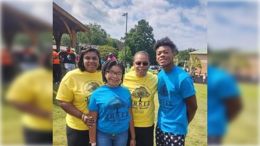 (Image: (L-R) Katrina Jakes, Kamryn Jakes, Byron Jakes, Braylon Jakes. Facebook / National Pan-Hellenic Council of Columbus Georgia / Screenshot)