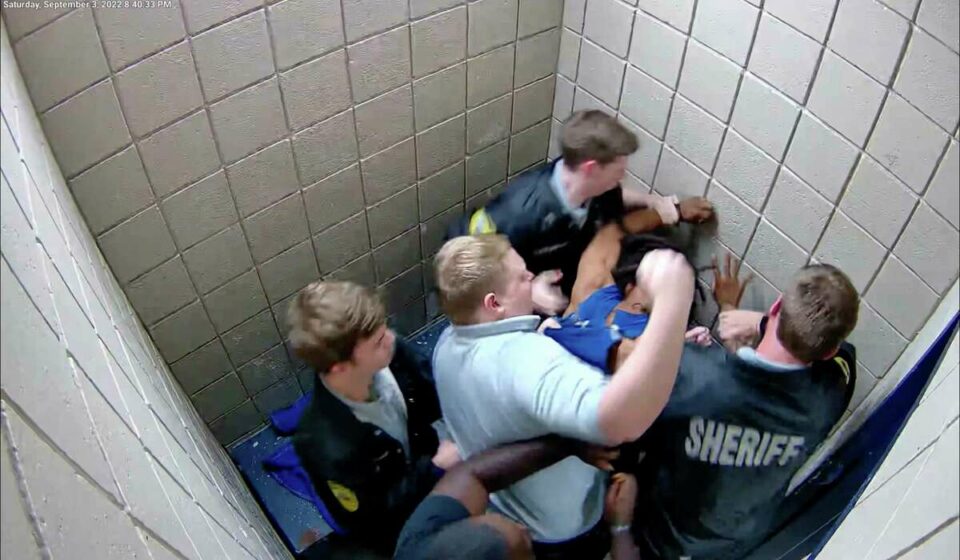According to The Associated Press, the video shows five deputies jumping on Jarrett Hobbs, who was booked on traffic violations and drug possession.