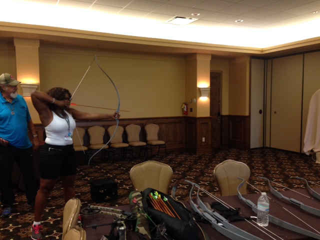 Then it was time for the participants to try it out for themselves. It wasn’t long before the instruction set in and the talent took over. Each attendee, though beginner level, impressed not only themselves but the instructor with their ability to take direction, exercise patience, and execute. The instructor even commended one participant for having a level of archery talent so rare that only 1 out of 2000 archers obtain it. There was much excitement and camaraderie as everyone tried something new and talked about hoping to do it again.