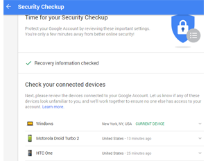 The checkup will also show a list of devices used to access your account, and you can report any that are unfamiliar or look suspicious. It will also display a list of all apps and websites that have access to your account. You can remove anything unfamiliar here, as well.