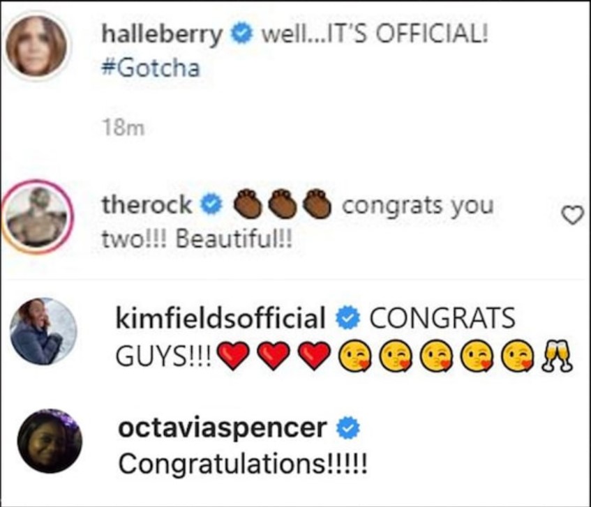 According to TMZ, Berry originally added “#Gotcha” to the caption. But that still wasn’t enough to stop Dwayne Johnson, Octavia Spencer and Kim Fields from offering their well wishes.