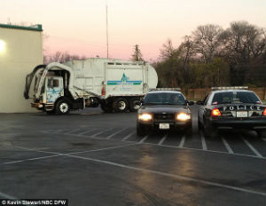 A homeless man in Fort Worth, Texas, was seeking a warm place to sleep inside a garbage bin on chilly Wednesday morning when a compactor truck came to pick up the garbage.