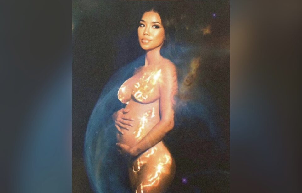 On Friday, she shared a stunning celestial maternity picture where she appeared nude, glittered in gold, and cradled her stomach.