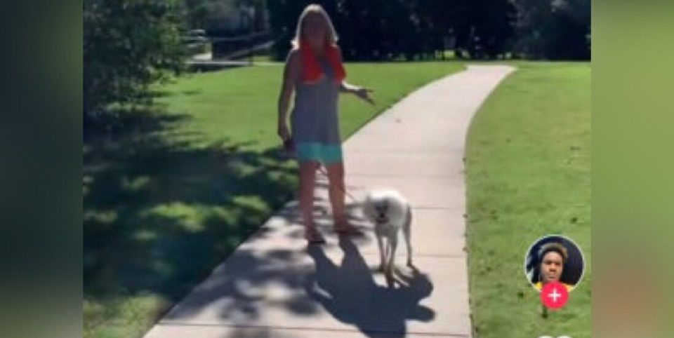 In the video, a young Black man is seen approaching the woman he says pushed him off his skateboard and then tried to block his pathway.