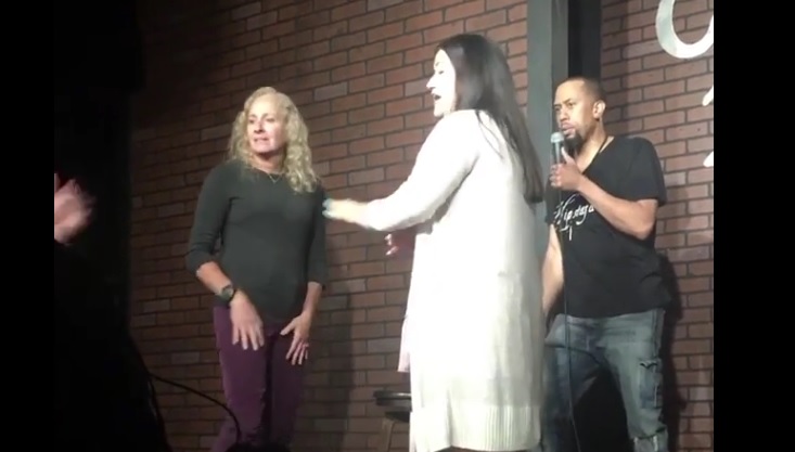 “See, white people be thinking they can do whatever the f— they want: storm the Capitol or storm my God d— stage,” he says as the woman is escorted off stage by a Comedy Zone staffer.