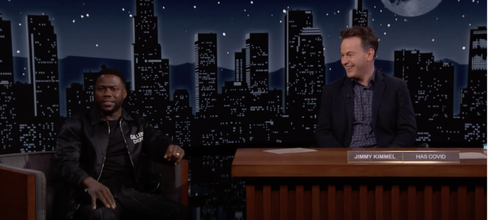 Hart spoke to Mike Birbiglia, who was subbing as a guest host on the late-night talk show as Kimmel recovers from contracting COVID-19. During their interview, Birbiglia segued into the Chappelle incident, saying it was scary. Hart disagreed with a shrug, “Not scary…somebody ran on stage and got their ass whooped.”