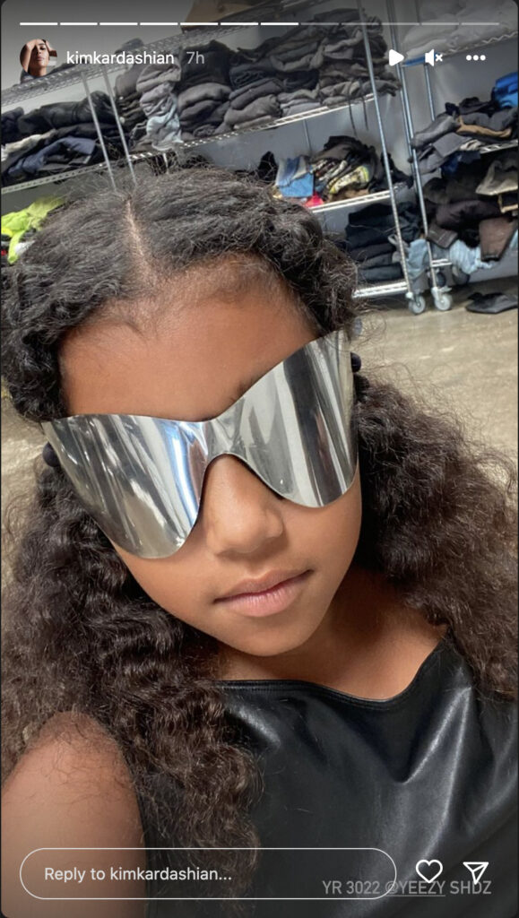 A third picture Kardahsian shared appears to be North modeling the very glasses in her sketch, which are actually part of her dad’s collection, the YR 3022 YEEZY SHDZ.