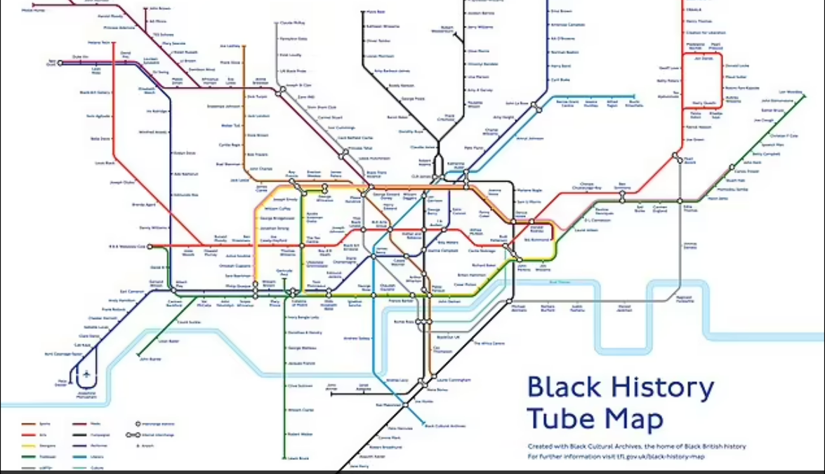 “Black history is London’s history,” he said, “and this reimagination of the iconic Tube map celebrates the enormous contribution black people have made, and continue to make, to the success of our city.