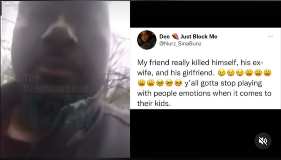 “Anyway, I just did something crazy, man. I just shot my ex-girlfriend in the head,” he says in the clip, later shared to Twitter by a friend. “Felt like a dream. I never thought I would be that guy. I can’t go to prison, so the person that really started my depression and all of this is my ex-wife. So, she next. Then I’m going to do myself too.”