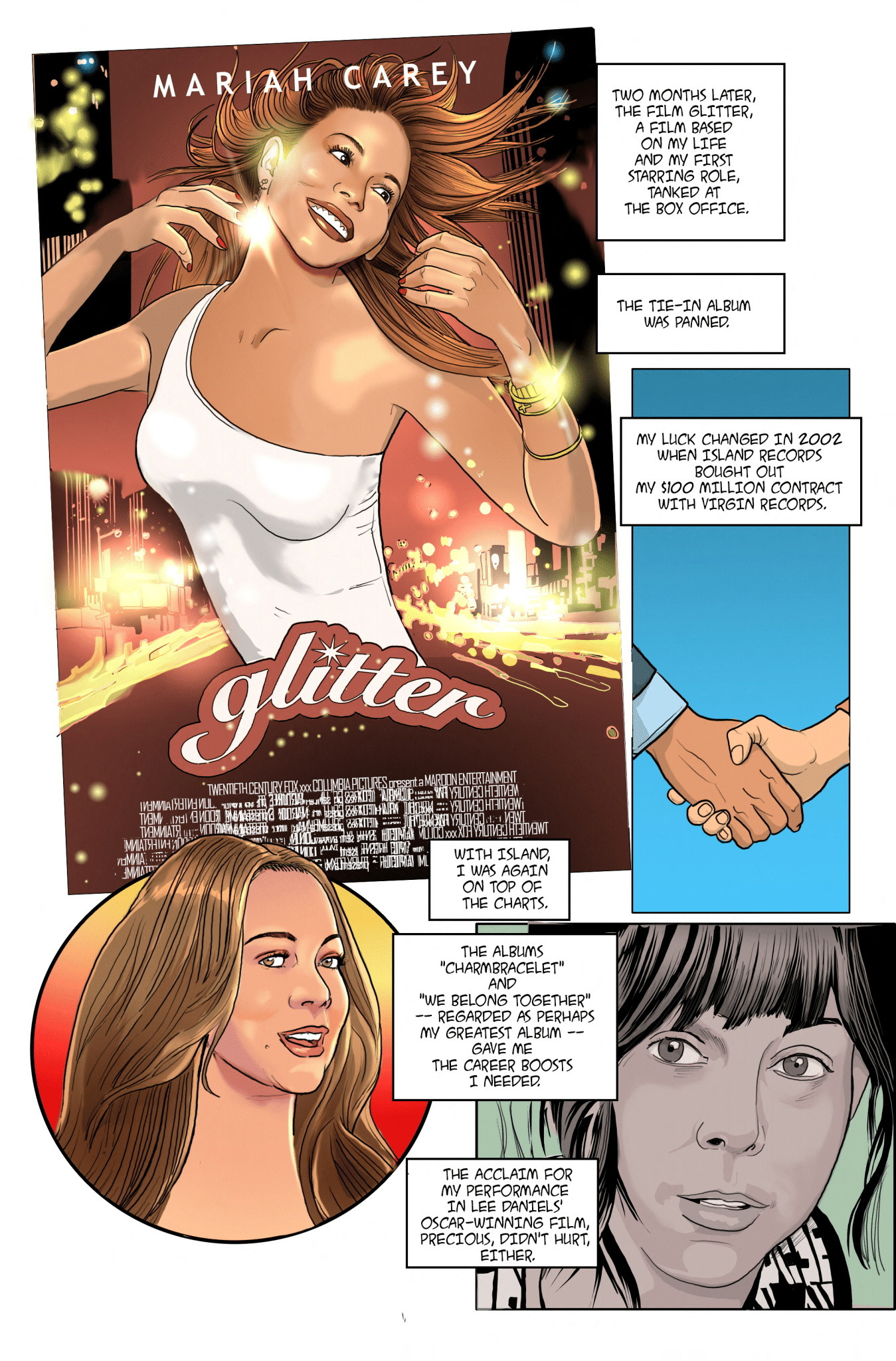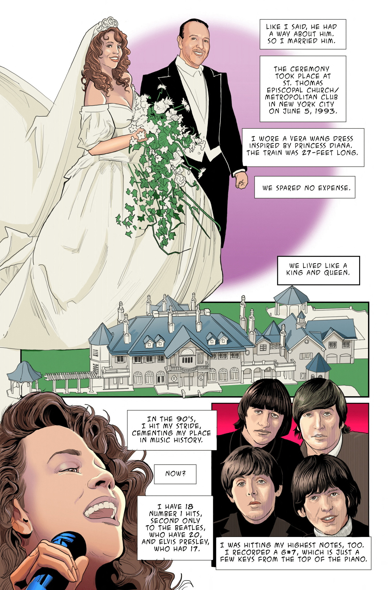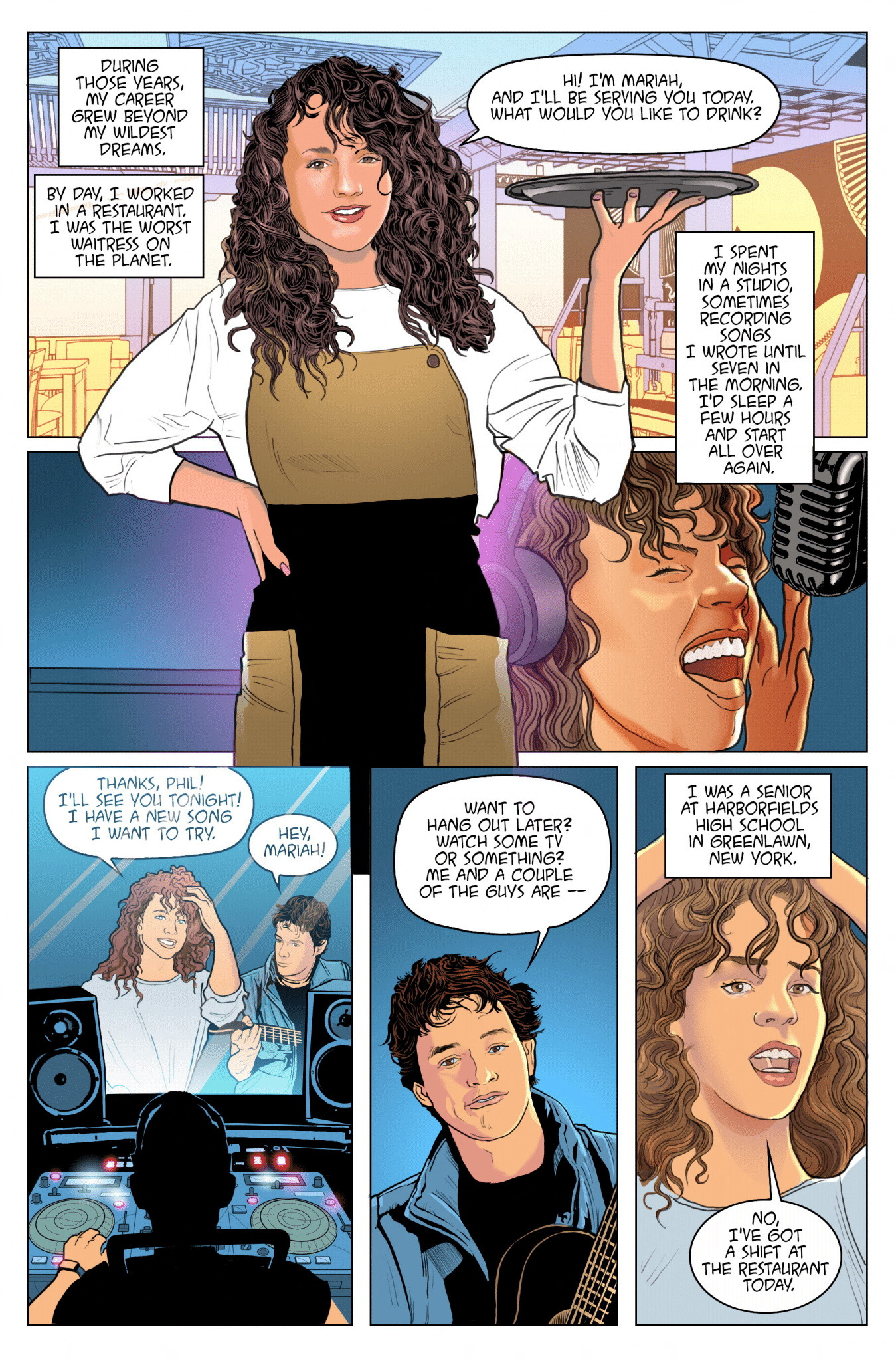 In 22 pages, Carey’s childhood and rise to fame is outlined in vivid color with illustrations by Pablo Martinena.