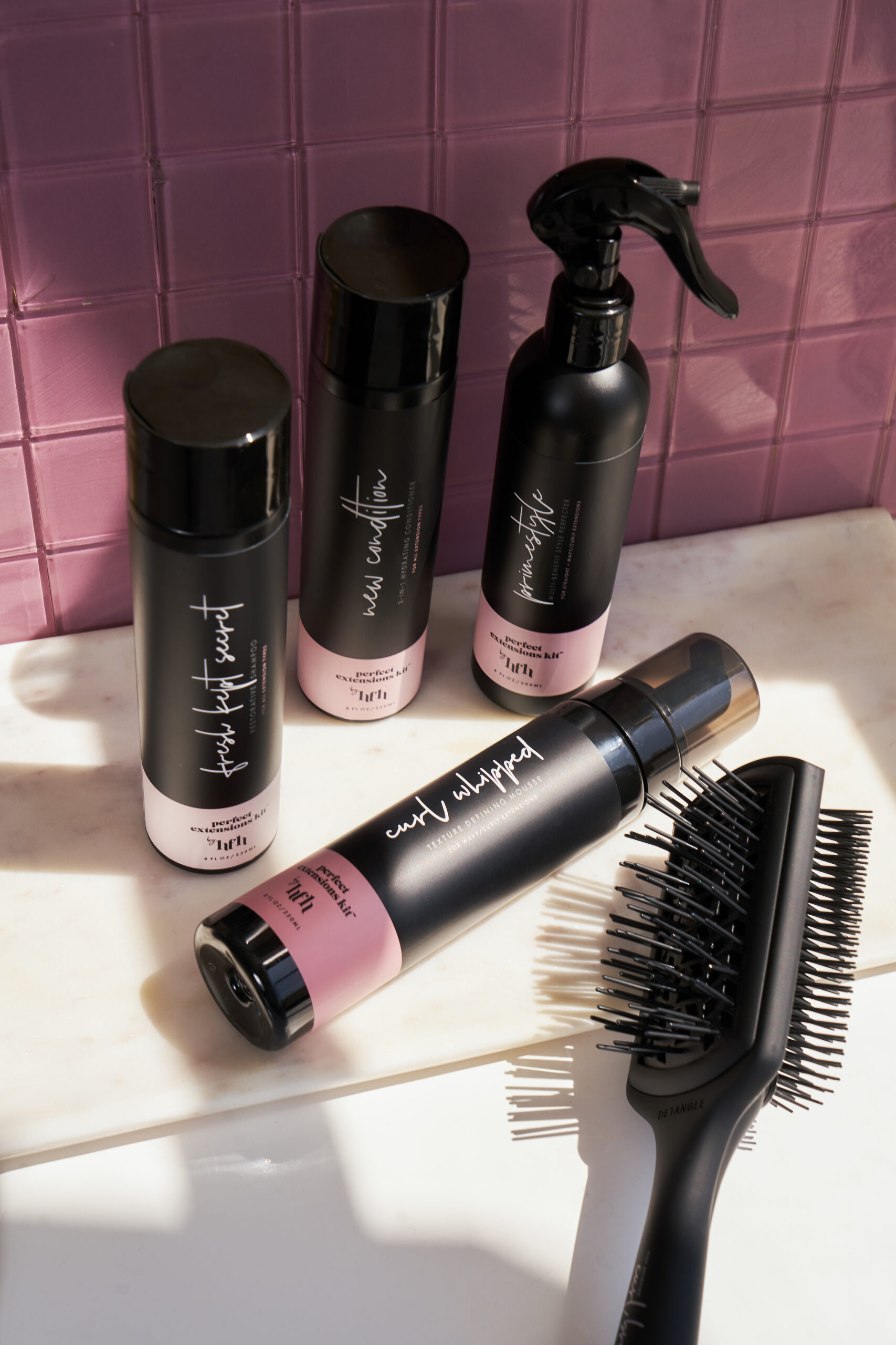 P.E.K. features three textured tailored kits with lightweight formulations that work to keep extensions looking fresh and healthy, no matter the texture, and regardless of your real hair type. The High Definition Curlbrush was created to simplify the detangling and styling process (an often rigorous and multi-step process for natural hair and extension wearers). The HD Curlbrush cuts out the need for multiple different tools with it’s dual-sided design that transform the look of curls.