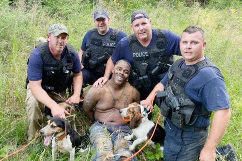 Four police officers that were part of an expansive manhunt were photographed in Mississippi with the suspect. The photo went viral, with people on social media saying the photo with a Black suspect looks racist.