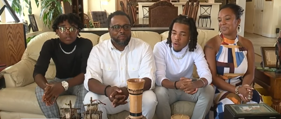 Evans and his wife, LeyShon, rented out the park for their 15-year-old son, Noah, and 17-year-old son, Isaiah. A video shows a police officer and park official standing at the park’s gates preventing the large group from entering. Evans asks if the group is making them uncomfortable.