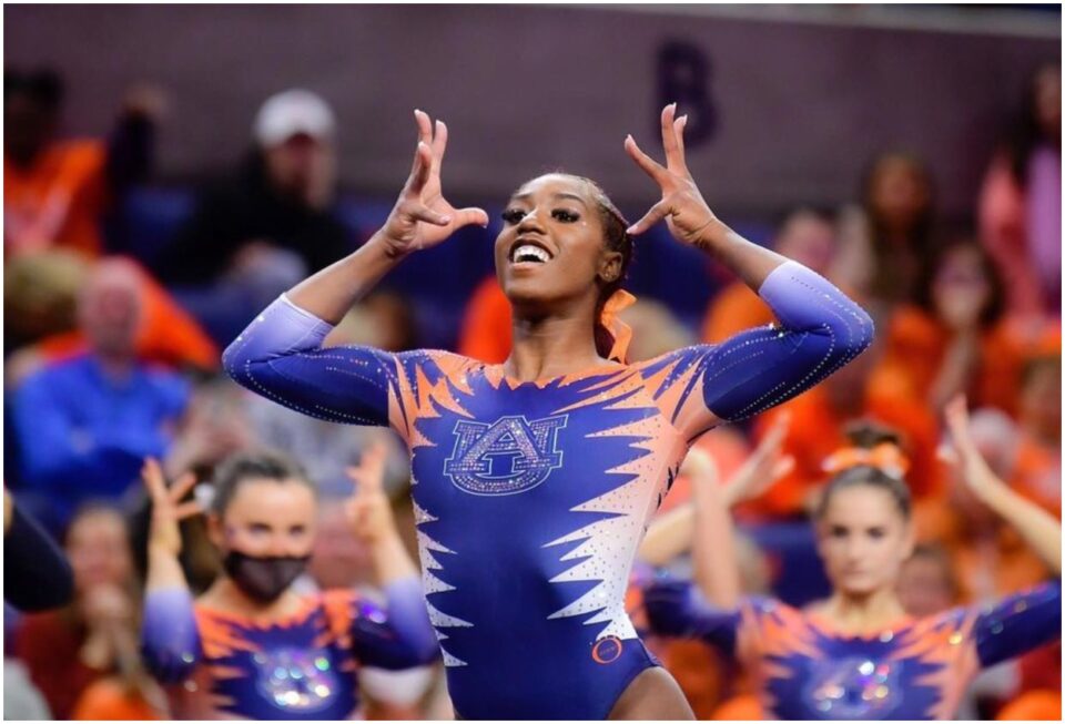 Affectionately known as the “Queen of the Floor,” Gobourne continues to perform in front of sell-out crowds at Auburn University, solidifying her royal status in collegiate gymnastics history.