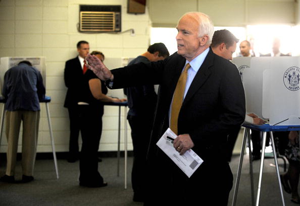 Wearing a Vietnam Vet hat adorned with pins and a shirt that read, “Veterans for McCain,†Santillo said McCain doesn’t have everything it takes to be president but enough to win his vote.