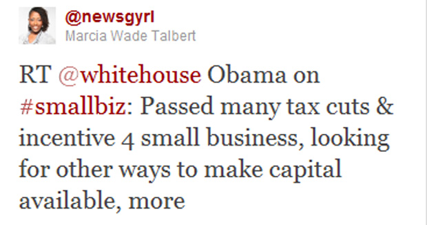 Black Enterprise multimedia content producer and tech guru Marcia Wade Talbert retweets the president’s take on small business opportunities.