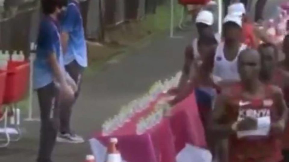 BREAKING: The Gold medal for biggest d*ckhead of the Tokyo Olympics goes to French marathon runner Morhad Amdouni who deliberately knocks over all the water for his fellow competitors…Unbelievable! pic.twitter.com/D4IwmlAHlL